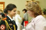 Полковник внутренней службы Жанна Ожимина предложила обратить внимание на такую особенную и близкую всем собравшимся категорию детей, как дети женщин-офицеров, для чего разработать специальную программу «Мама в погонах». Ведь нельзя же забывать, что у российских леди в военной форме никто не отнимал родительских обязанностей.