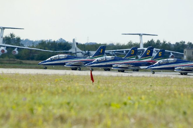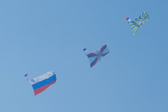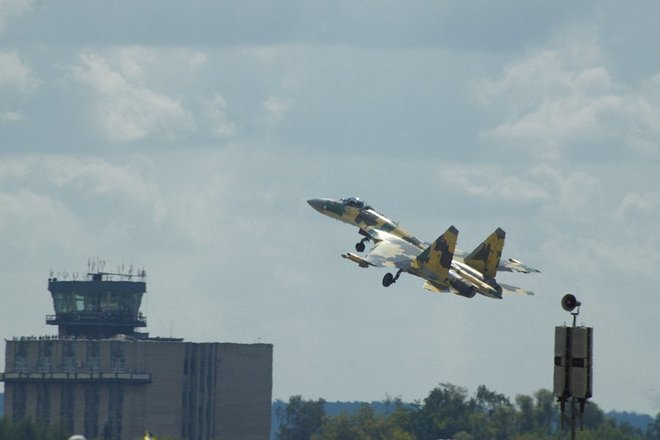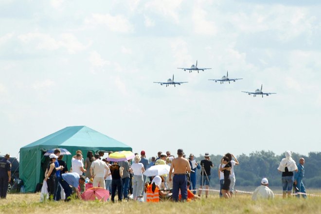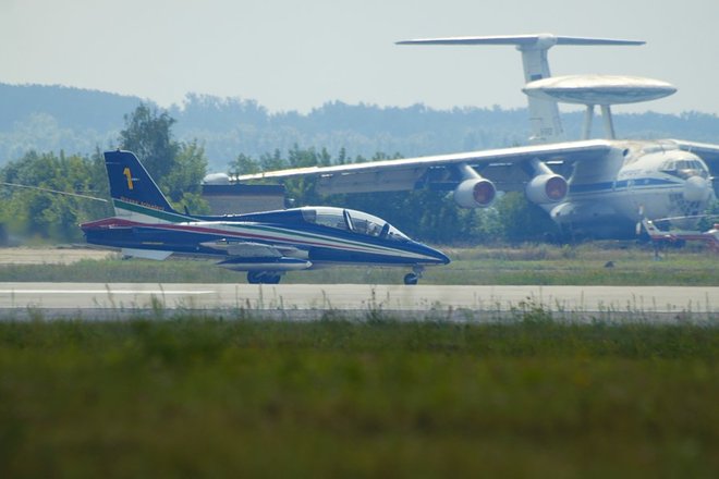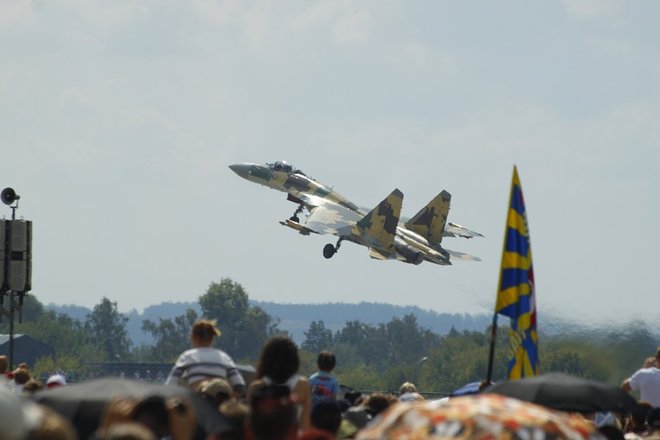 Апогеем праздника стало выступление всемирно известных пилотажных групп «Русские витязи» на самолетах Су-27 и «Стрижи» на МиГ-29.