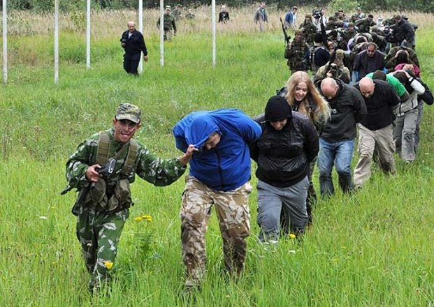 На полигоне танкового соединения Западного военного округа военнослужащие-разведчики в рамках учебно-практических курсов «Бастион» по подготовке представителей СМИ к работе в кризисных ситуациях захватили в «заложники» журналистов, проходящих обучение.