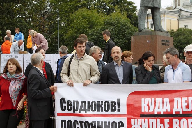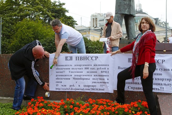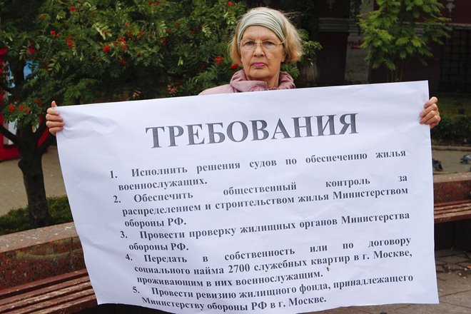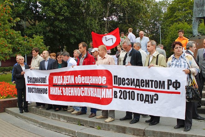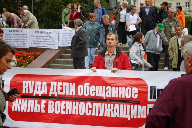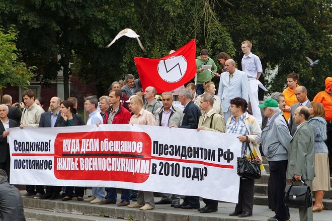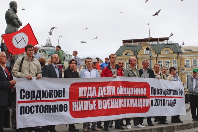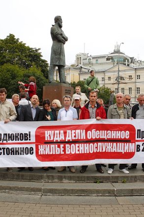 14 августа у памятника Энгельсу на Пречистенке собралось около 50 военнослужащих и членов их семей, чтобы привлечь внимание Минобороны, общественности к проблеме обеспечения жильем отставных военных. Только в Москве очередь военнослужащих, ожидающих квартиры, составляет более 9 тысяч человек, а по России в «подвешенном» состоянии находится более 100 тысяч человек.