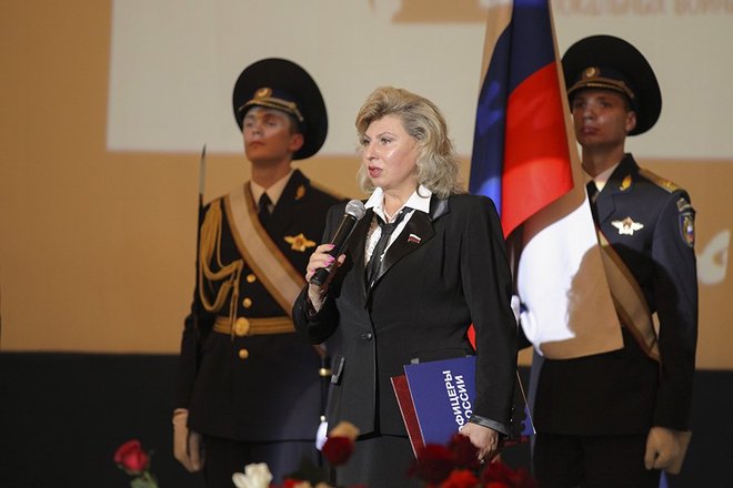 Т.Н. Москалькова зачитала участникам концерта приветственное письмо председателя президиума Общероссийской общественной организации «ОФИЦЕРЫ РОССИИ» Антона Цветкова.