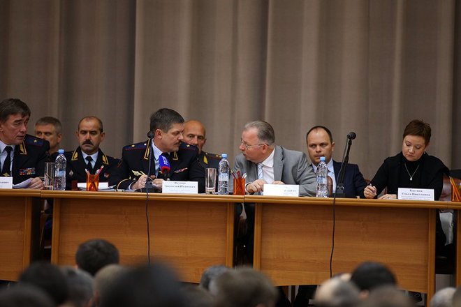 13 сентября начальник Главного управления МВД России по г. Москве Анатолий Якунин провел в УВД по ЦАО выездное совещание руководящего состава московской полиции по противодействию преступности и охране общественного порядка в жилом секторе на примере Центрального административного округа Москвы. На нем были рассмотрены вопросы взаимодействия полиции с органами исполнительной власти, частными охранными организациями и народной дружиной.