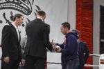На закуску организаторы турнира оставили шуточный поединок «РУБАХА-ПАРЕНЬ», в котором случайные парни из зала (ими оказались дипломат и медбрат) в течение двух раундов мерялись силушкой богатырской. Сильнее оказался медбрат, который стал счастливым обладателем боксерской амуниции.