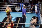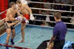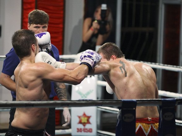 Поединки по тайскому боксу проходили по азиатским и европейским правилам, что, несомненно, придавало турниру остроты и разнообразия. Было все: нокауты, травмы, рассечения, удары ниже пояса и запрещенные приемы – зрители стоя аплодировали некоторым бойцам. Например, целое море оваций досталось 16-летнему Александру Котову, который не оставил своему 28-летнему сопернику Алексею Моторину ни единого шанса на победу. С самого начала поединка завладев инициативой, Александр буквально «сломал» волю опытного и сильного оппонента, чем вызвал шквал эмоций в зале и особое расположение Александра Иншакова, который в конце вечера вручил Саше боксерские перчатки и подчеркнул, что Саша сегодня проявил на ринге настоящую волю к победе – наверное, самое главное качество спортсмена.