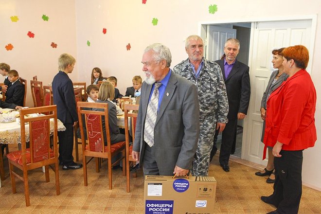 Ветераны также передали детскому дому подарок от Общероссийской общественной организации «ОФИЦЕРЫ РОССИИ» – новенький ноутбук.