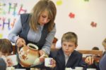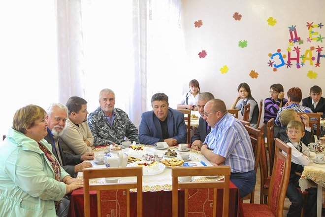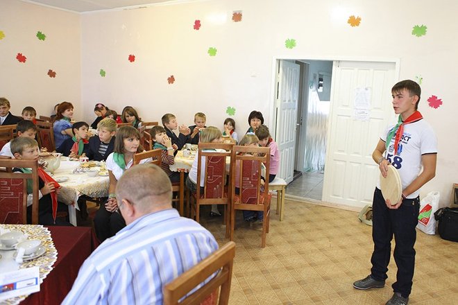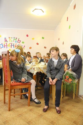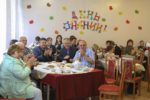 Гостей встретили тепло, по-домашнему, за чашкой чая. Да и они тоже порадовали ребят: привезли с собой сладкие подарки – 15 тортов. Праздник проходил в актовом зале, где собрались почти все ребятишки. А их здесь воспитывается более 60 человек в возрасте от 4-х до 16-ти лет.