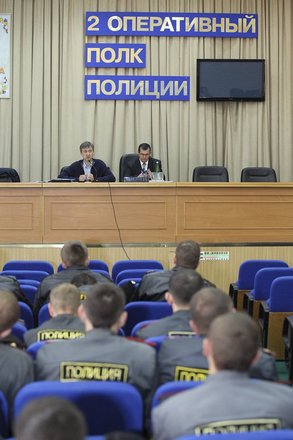 «ОФИЦЕРЫ РОССИИ» 15 октября организовали цикл лекций для сотрудников 2-го Оперативного полка ГУ МВД России по Москве. Занятия провели высококвалифицированные специалисты, и рассчитаны они были на две аудитории – офицеров полка и полицейских-контрактников.