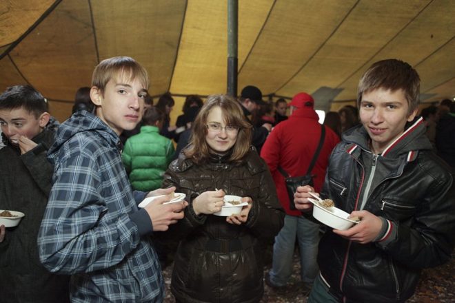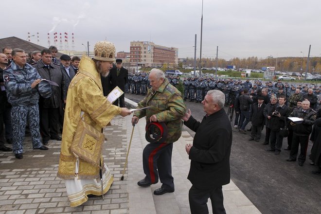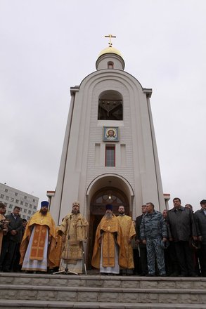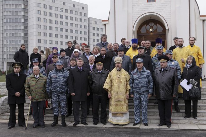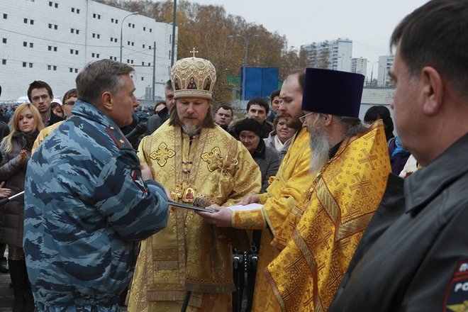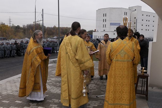 Начался праздничный день со святого события – на территории ЦСН ГУ МВД России по г. Москве состоялось освящение и торжественное открытие храма Святого Благоверного князя Дмитрия Донского. Строительство храма в честь погибших при исполнении служебного долга сотрудников. Провести молебен по случаю открытия храма, а также для освящения памятника Дмитрию Донскому, установленному перед храмом, прибыли представители православного духовенства. На молебне кроме руководства подразделения присутствовали также ветераны ОМОН и родственники погибших сотрудников.