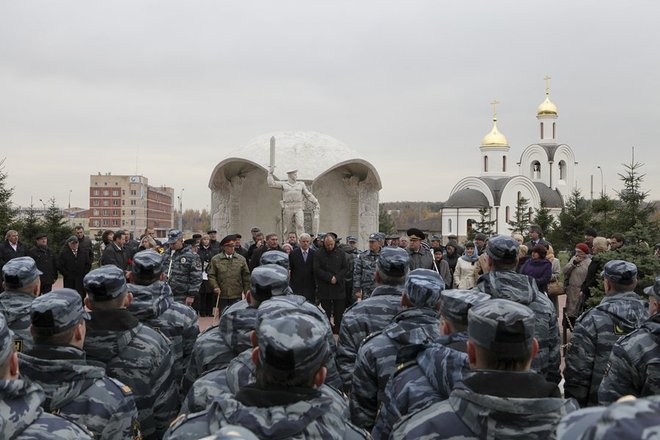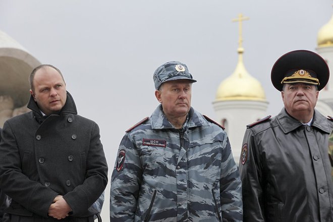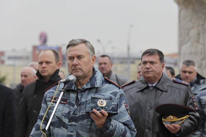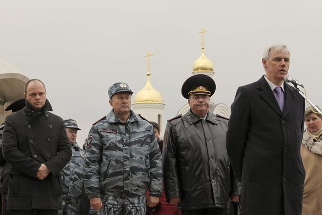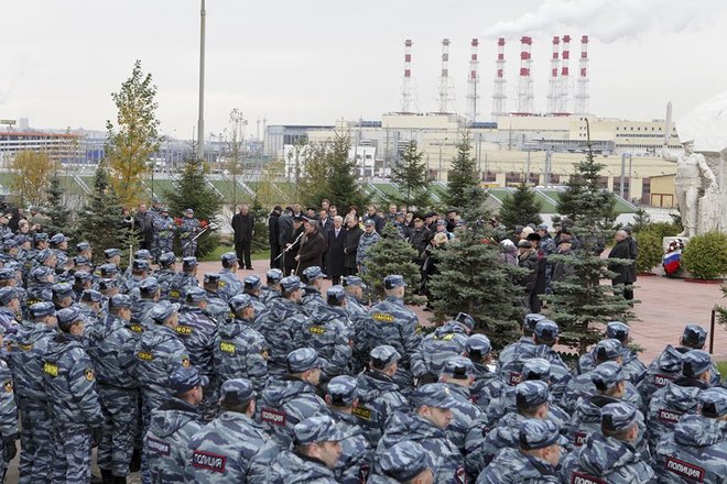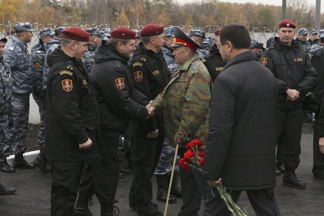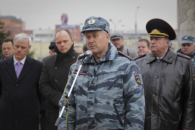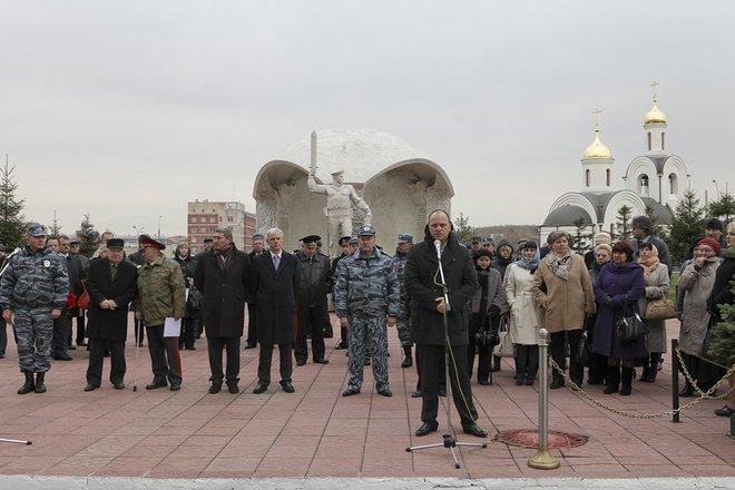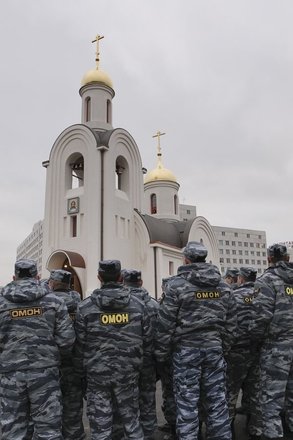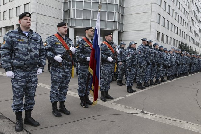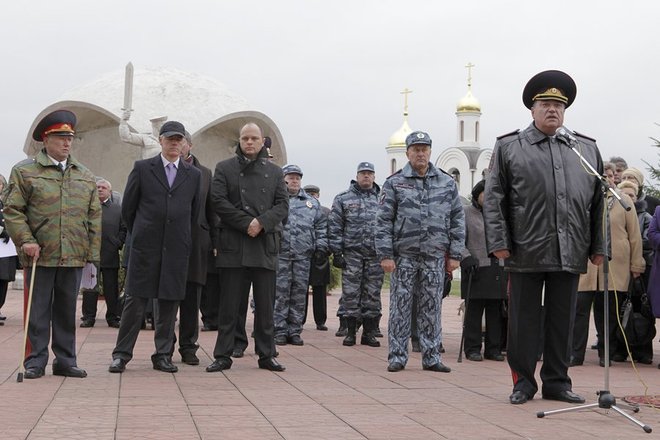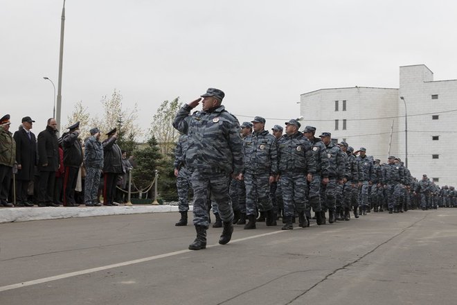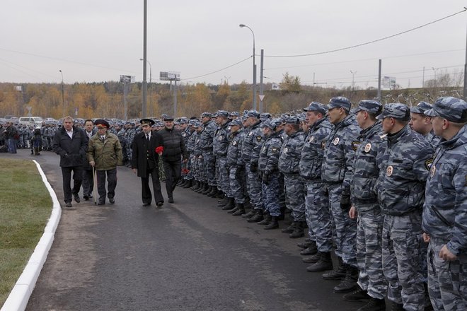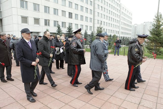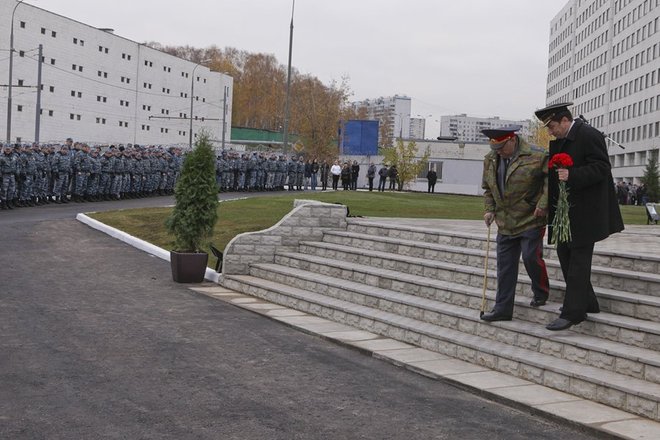 Митинг закончился возложением цветов к пантеону погибшим сотрудникам и прохождением личного состава ОМОН торжественным маршем.