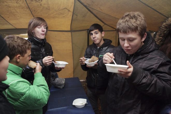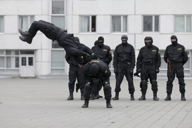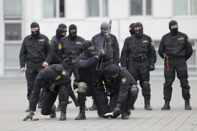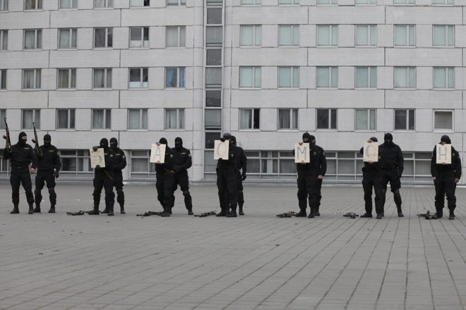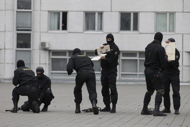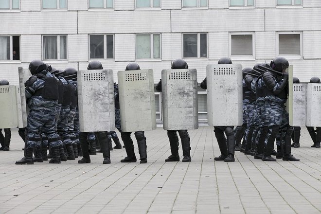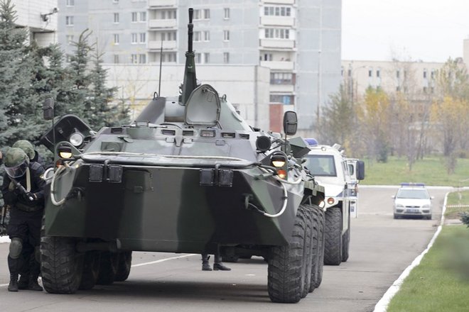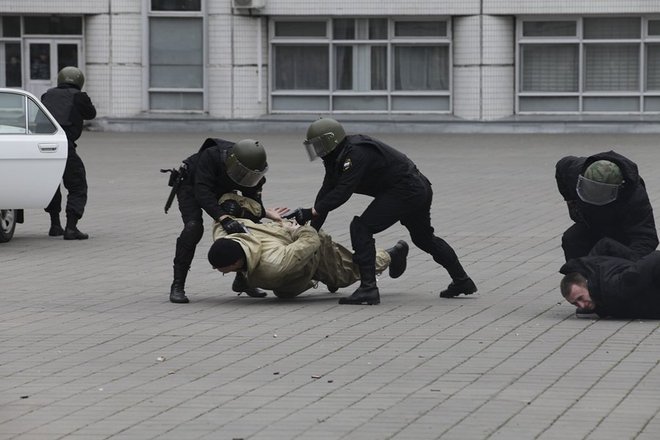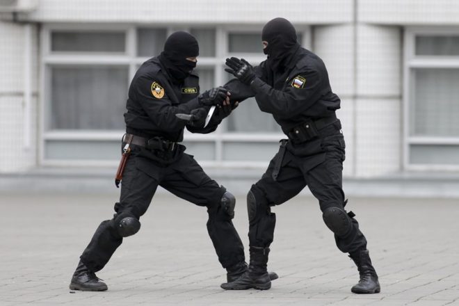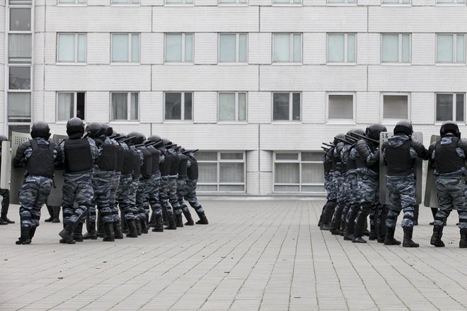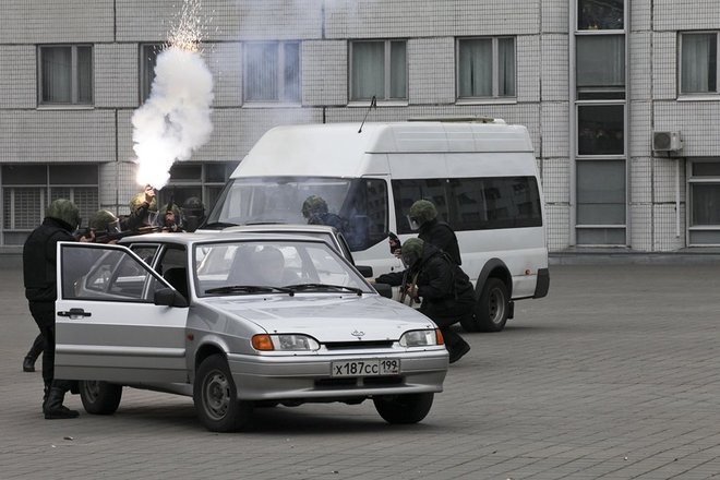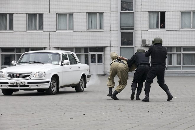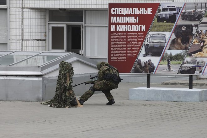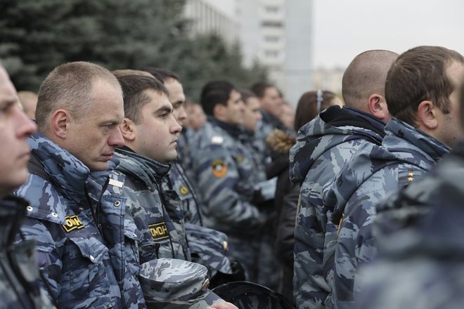 Митинг закончился возложением цветов к пантеону погибшим сотрудникам и прохождением личного состава ОМОН торжественным маршем.