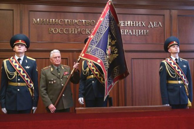 Торжественный ритуал прибивки полотнища знамени МВД России к древку прошел в соответствии с многовековой традицией, призванной показать общность всех сотрудников органов внутренних дел – от руководителя до младшего состава.