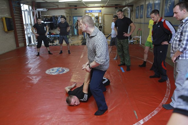 Этот цикл практических занятий по рукопашному бою проводит член президиума нашей организации, ветеран группы антитеррора «Альфа» майор запаса Игорь Шевчук.