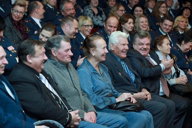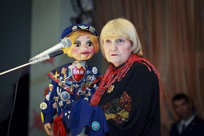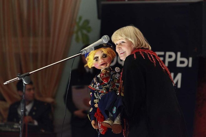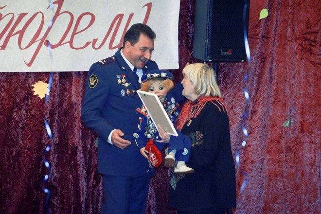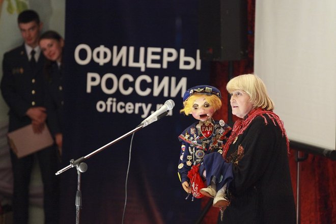 С небольшим концертом перед зрителями выступили члены благотворительного совета «ОФИЦЕРОВ РОССИИ» – народная артистка России Раиса Виноградова со своим маленьким помощником-юмористом в коротких штанишках, куклой Кирюшей и актриса театра «Мульти-пульти» Оксана Тим.