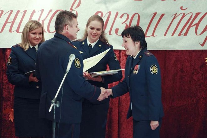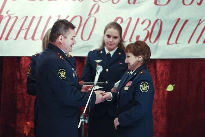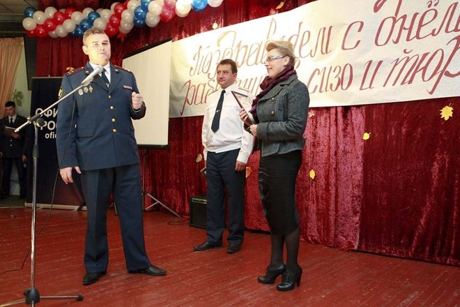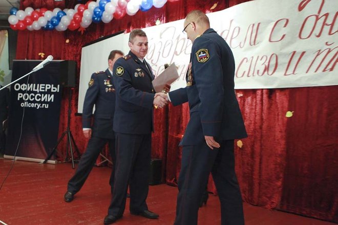 С профессиональным праздником личный состав поздравил начальник УФСИН России по г. Москве полковник внутренней службы Анатолий Тихомиров. Он вручил наиболее отличившимся сотрудникам почетные грамоты, благодарности, ведомственные награды и погоны с присвоением очередного звания. Кроме того, начальник управления вручил благодарственное письмо исполнительному директору Общероссийской организации «ОФИЦЕРОВ РОССИИ», заместителю председателя Общественного совета при УФСИН по Москве Сабине Цветковой за помощь в организации мероприятия.