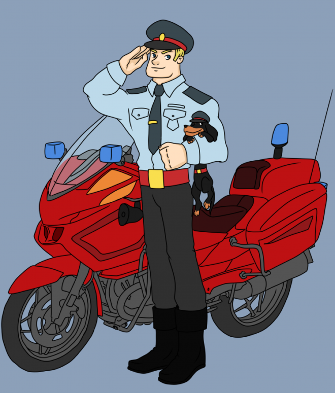 Сказочный герой московской полиции использует ГЛОНАСС, борется с догхантерами и на своём мотоцикле быстро добирается до пострадавших через пробки.