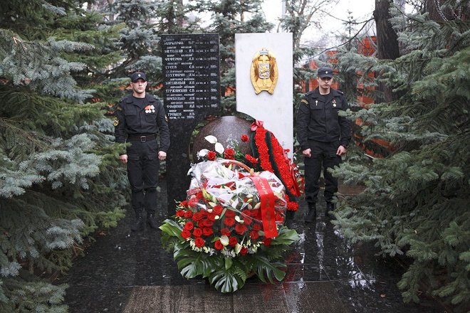 Собравшиеся минутой молчания почтили память сотрудников, погибших при исполнении служебного долга.