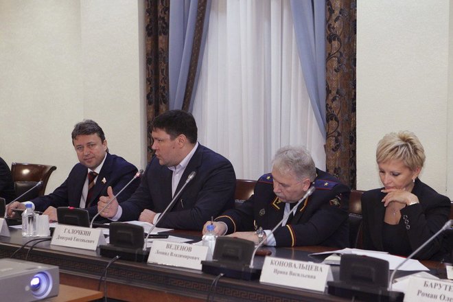 В заседании приняли участие заместитель начальника Главного управления обеспечения охраны общественного порядка и координации взаимодействия с органами исполнительной власти МВД России Леонид Веденов, депутаты Госдумы Андрей Луговой, Анатолий Выборный и другие.