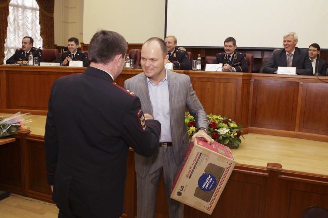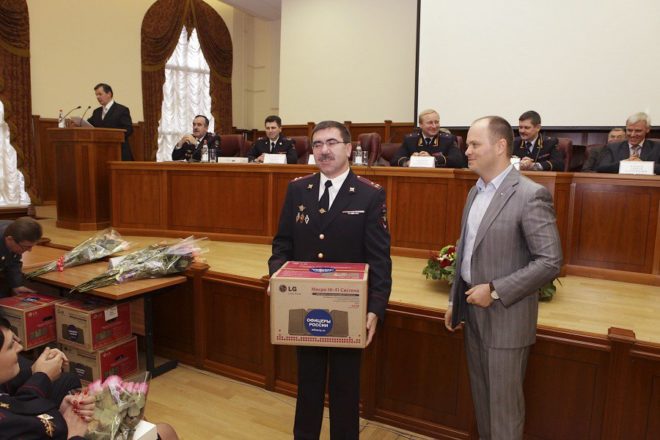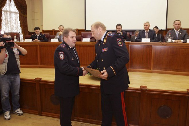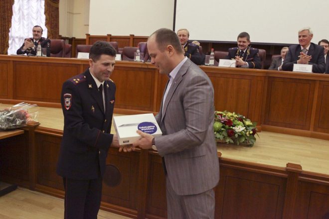 Кроме того, Антон Цветков вручил наиболее отличившимся полицейским медали организации «За офицерскую честь», а также пять музыкальных центров и пять планшетных компьютеров.