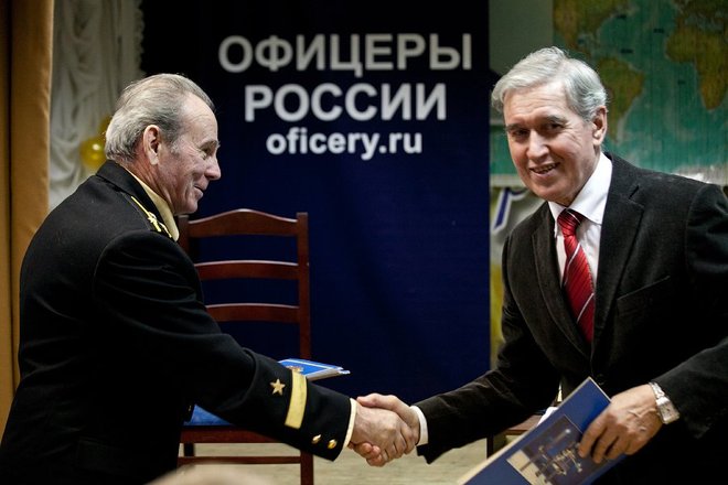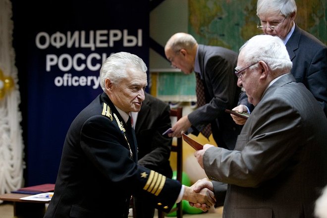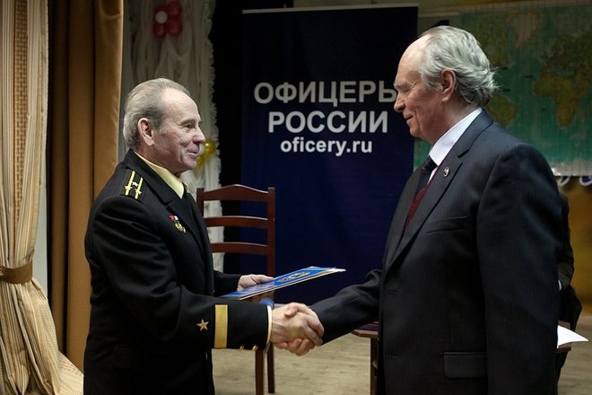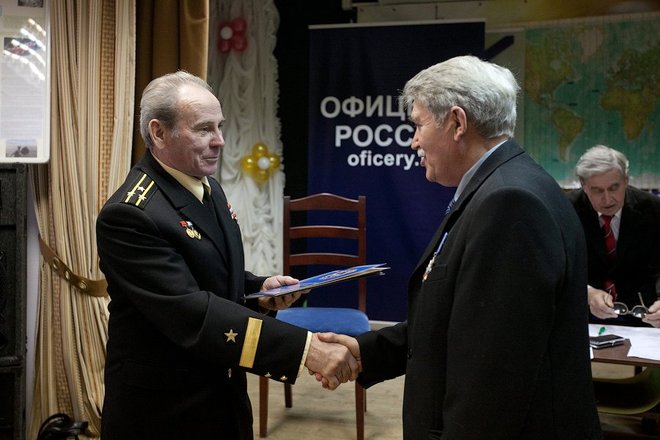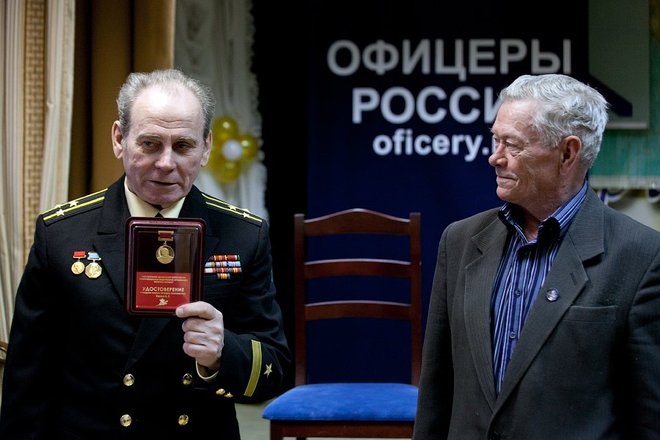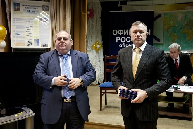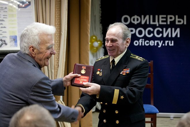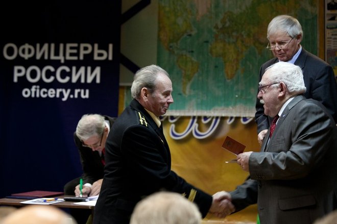 Затем в Культурном центре «Митино» состоялось торжественное поздравление и награждение ветеранов. Так, региональный представитель «ОФИЦЕРОВ РОССИИ» в Москве Сергей Лазарев и руководитель управления регионального развития «ОФИЦЕРОВ РОССИИ» Анатолий Зверев рассказали о деятельности нашей организации и вручили медали «За офицерскую честь» четырем офицерам воинской части.