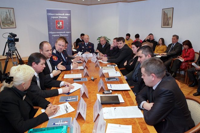 Модератором круглого стола выступил председатель президиума «ОФИЦЕРОВ РОССИИ», председатель комиссии Общественного совета Москвы Антон Цветков. В заседании приняли участие члены Общественного совета Москвы, представители силовых структур, органов исполнительной власти и общественных организаций города. Среди них были начальник управления организации обеспечения общественного порядка Управления на транспорте МВД России по ЦФО Павел Козика, заместитель начальника полиции по охране общественного порядка УВД на Московском метрополитене Дмитрий Смирнов, председатель Московского городского совета общественных пунктов охраны порядка Татьяна Косаревич, первый заместитель Атамана Войскового казачьего общества «Центральное казачье войско» по государственной службе Геннадий Колесников, член войскового правления Центрального казачьего войска РФ Сергей Шишкин, председатель Совета ветеранов ФМС Юрий Шарогоров и другие.