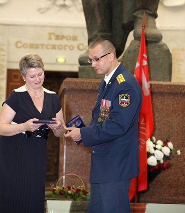 Член президиума «ОФИЦЕРОВ РОССИИ», командир ОСН «Сатурн» УФСИН России по Москве полковник внутренней службы Борис Николаев вручил медали организации «За офицерскую честь» командиру поискового отряда «Надежда» (Смоленская область) Зинаиде Назаровой и педагогу московской школы №96 Вячеславу Серикову за большой вклад в поисковую работу, сохранение исторической памяти и многолетнюю деятельность по патриотическому и нравственному воспитанию молодежи.