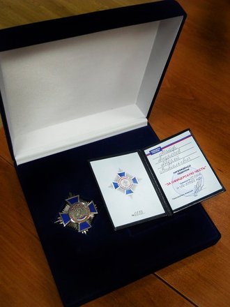 За проводимую работу, а также высоко несущего звание и честь офицера Андрей Андросов и удостоен этой награды.