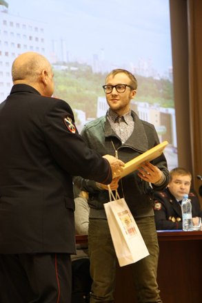 После отчетного доклада, сделанного заместителем начальника УВД по ЗАО ГУ МВД России по Москве полковником внутренней службы Александром Терентьевым, состоялось награждение одного из бдительных граждан, задержавшего грабителя на улице Ивана Франко в середине января.