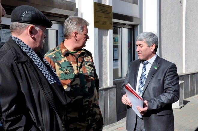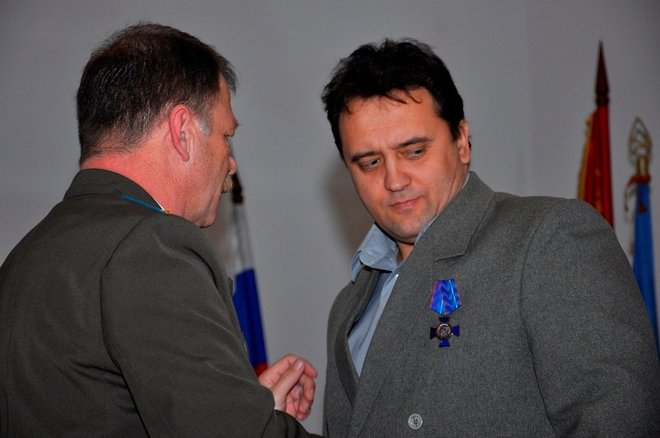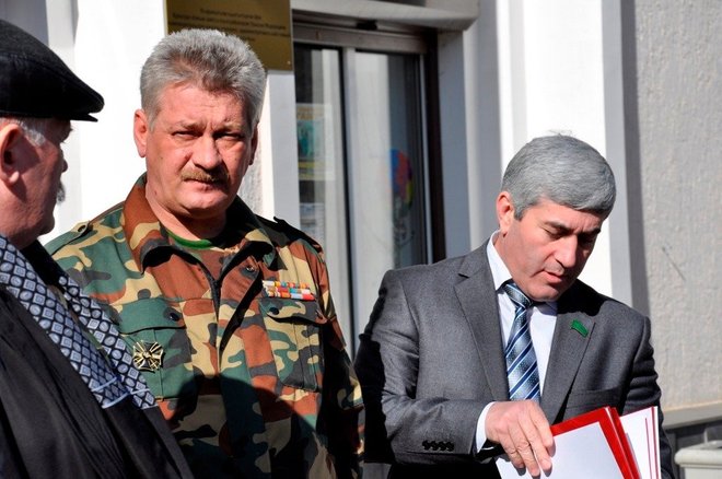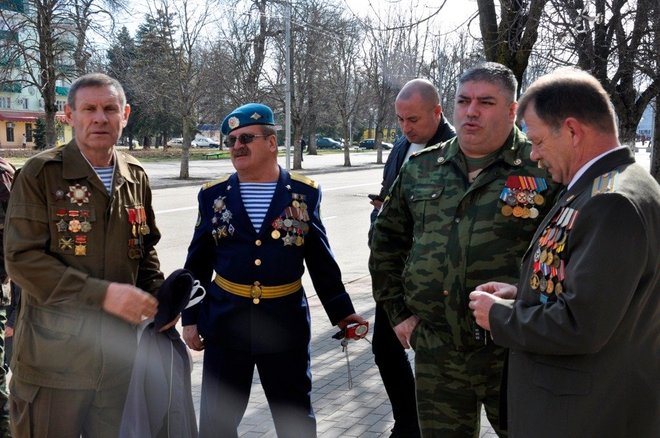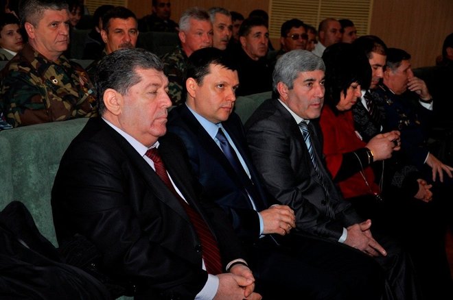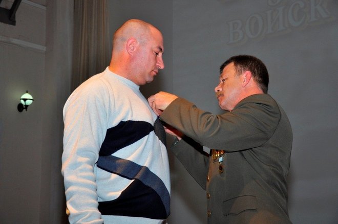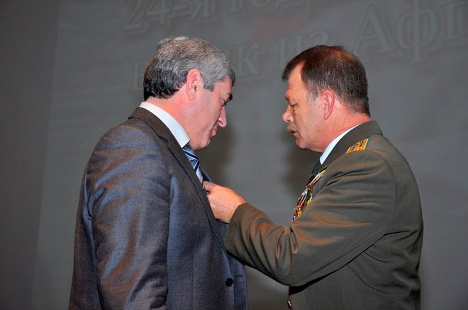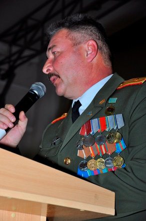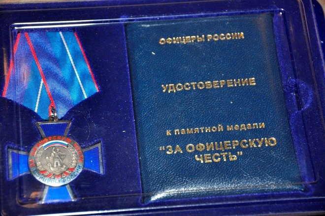 Затем региональный представитель «ОФИЦЕРОВ РОССИИ» в Адыгее Геннадий Мельников и члены организации Александр Добрянский и Николай Николенко вручили Юрию Татлок, Джамбечу Мирзе, Руслану Хут, Александру Андрейченко медали «За офицерскую честь».