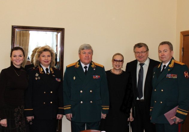 Среди более 400 участников приема – офицеры внутренних войск, Герои РФ, вдовы и родственники военнослужащих, погибших при выполнении воинского долга, ветераны Великой Отечественной войны, известные деятели культуры. В их числе были депутат Госдумы, председатель Совета «ЖЕНЩИНЫ-ОФИЦЕРЫ РОССИИ» генерал-майор милиции Татьяна Москалькова, народная артистка России Александра Пермякова, партизан-ковпаковец Герой Советского Союза Петр Брайко и другие.