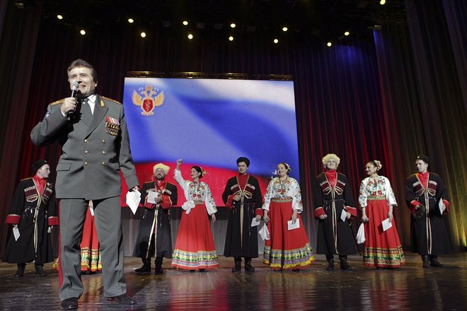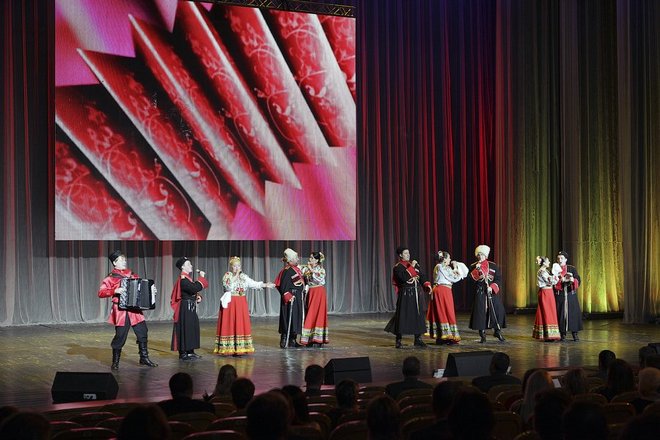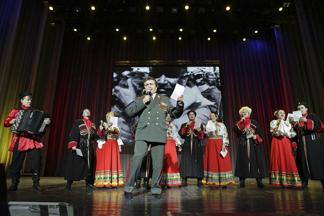 Для гостей торжественного мероприятия был подготовлен праздничный концерт, в котором выступили казачий коллектив и ансамбль воспитанников петровского кадетского корпуса.