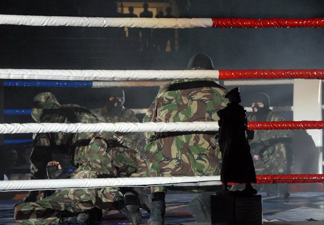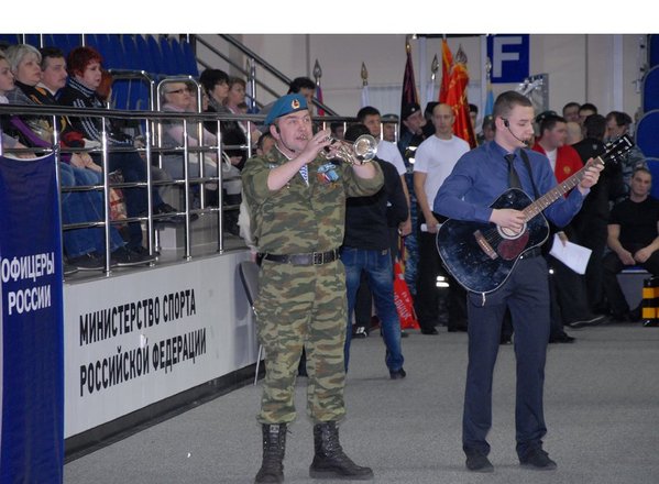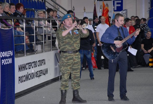 Затем в программу продолжили показательные выступления сотрудников курского СОБРа и спортсменов различных школ боевых единоборств г. Курска, композиции в исполнении лауреатов фестиваля-конкурса военно-патриотической песни, посвященного Герою России Андрею Хмелевскому.