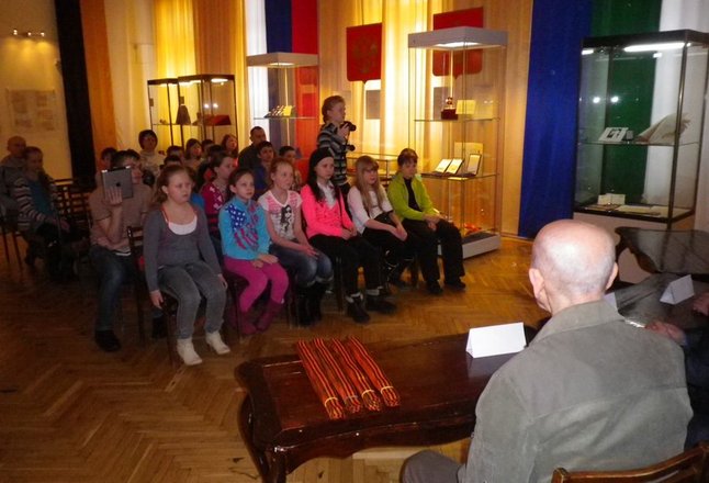 В завершение брифинга региональный представитель «ОФИЦЕРОВ РОССИИ» Коми Владимир Туров вручил георгиевские ленточки всем присутствующим – сотрудникам Национального музея, детям, представителям СМИ.