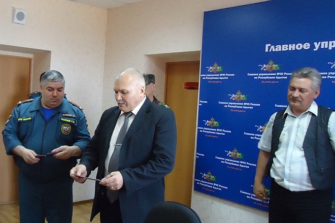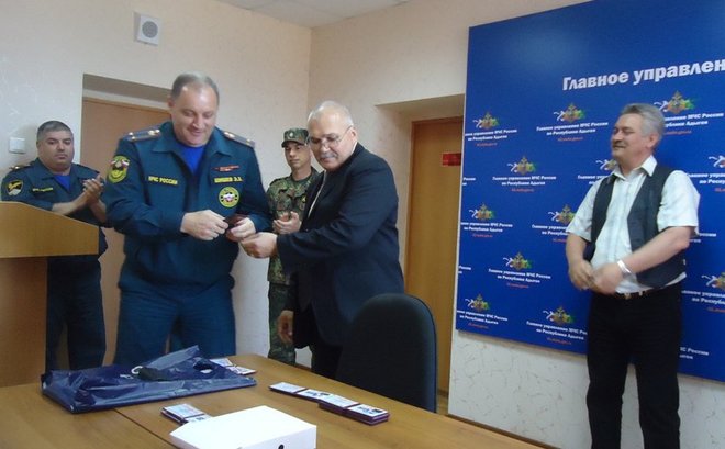 В ходе встречи Николай Николенко и Нальбий Шадже вручили удостоверения более 20 сотрудникам ГУ МЧС Адыгеи, которые вступили в организацию «ОФИЦЕРЫ РОССИИ».