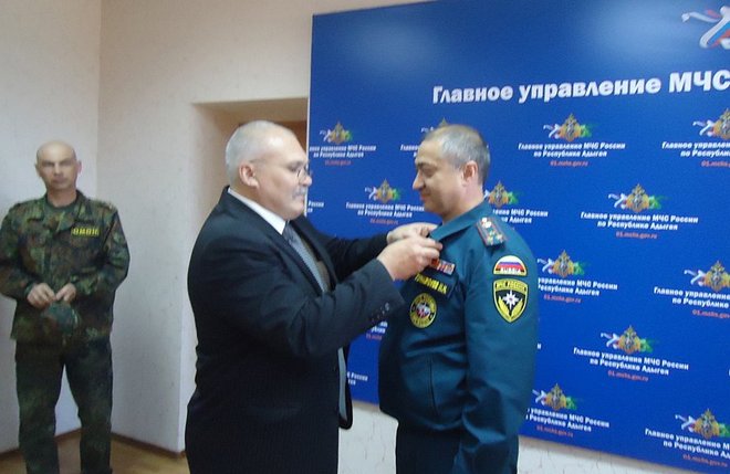 Руководитель регионального отделения «ОФИЦЕРОВ РОССИИ» Геннадий Мельников пожелал всем пожарным крепкого здоровья, успехов по службе, счастья. Затем он вручил орден «За офицерскую честь» руководителю ГУ МЧС РФ по РА Мурату Гунажокову за проявленную стойкость при выполнении заданий по ликвидации последствий в Крымске. Во время бедствия адыгейские спасатели одними из первых развернули необходимые пункты обеспечения бесперебойной работы подразделений. Кроме того, ГУ МЧС Адыгеи активно участвует в мероприятиях, проводимых региональным отделением «ОФИЦЕРОВ РОССИИ».