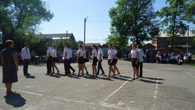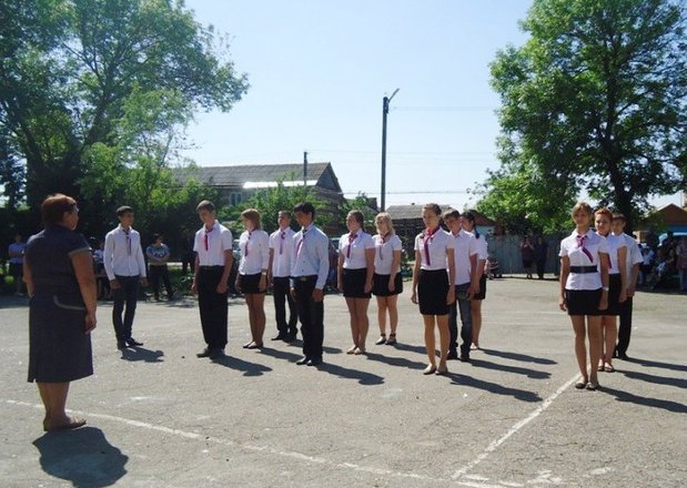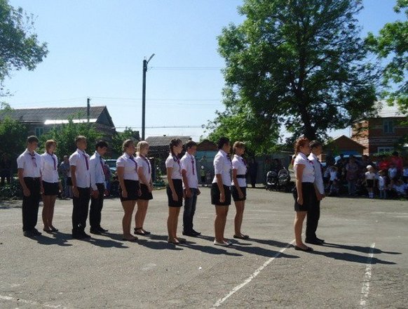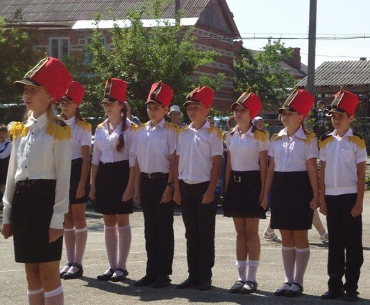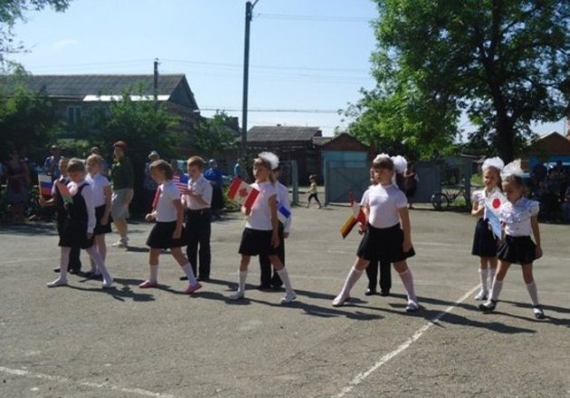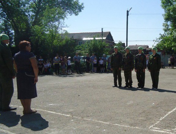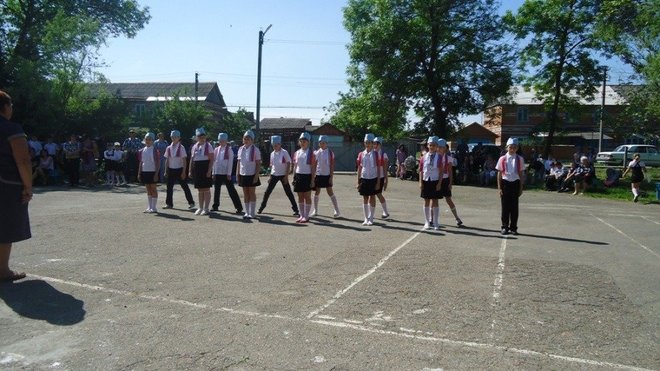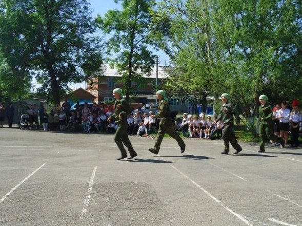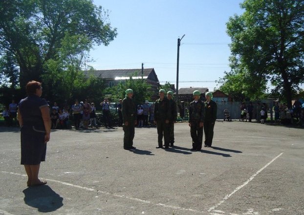 Так, ученики 1 класса вышли в казачьих костюмах и исполнили кубанскую песню. Четвероклассники выступили в военной форме и пели патриотическую песню. Учащиеся 5 класса были одеты в форму гусаров и рассказывали о войне 1812 года. Ученики 6 класса исполнили песню про пограничников и строевым маршем ушли «на защиту границы». Семиклассники инсценировали Великую Отечественную войну и сыграли сцену ухода призывников на войну. Восьмиклассники изображали военных моряков, а десятиклассники – бойцов спецназа.