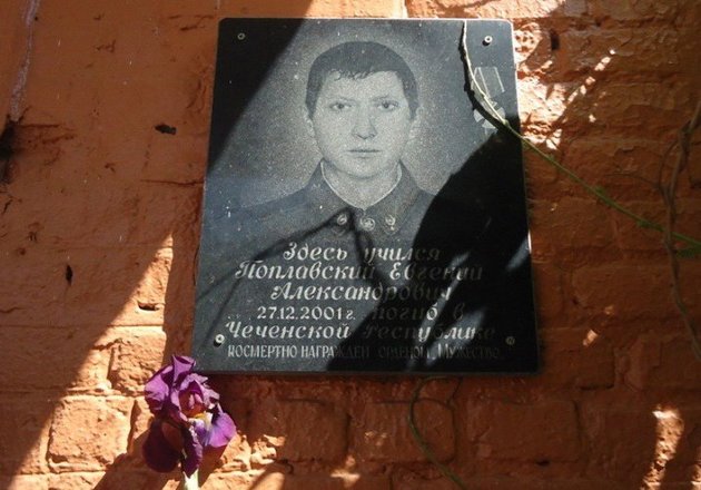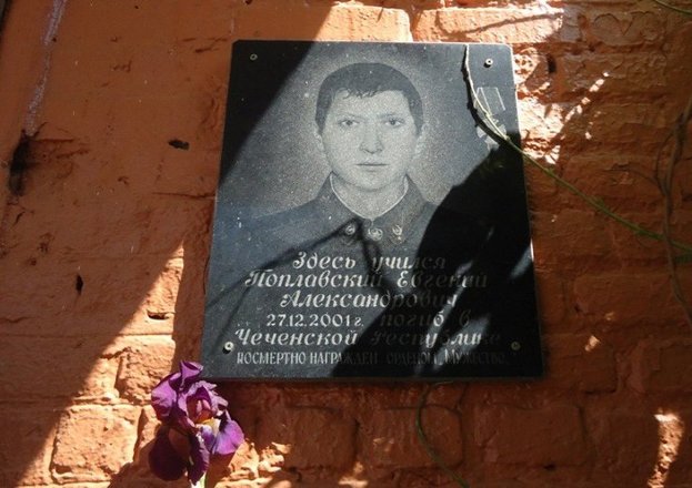Ученик школы Евгений Поплавский принимал участие в боевых действиях на территории Республики Чечня, где при исполнении служебного долга погиб. К мемориальной доске бывшего ученика Евгения Поплавского погибшего в Чеченской войне школьники также возложили цветы.
