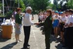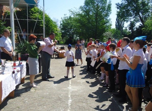 Подводя итоги конкурса, Геннадий Мельников поблагодарил ребят за отличную подготовку, замечательные костюмы, а также поздравил командиров – победителей и вручил директору школы Раисе Бугаенко подарки с символикой «ОФИЦЕРОВ РОССИИ».