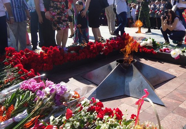 В этот день «ОФИЦЕРЫ РОССИИ» Адыгеи поздравили ветеранов Великой Отечественной войны с праздником, возложили цветы и венки к Вечному огню на Центральном мемориале города и почтили память погибших минутой молчания.