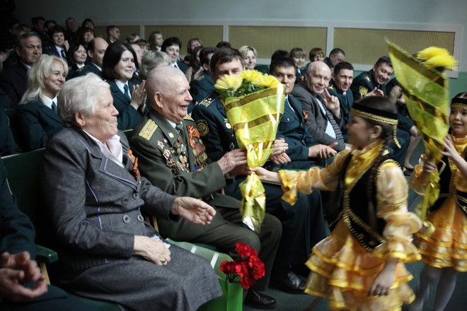 На огромном экране, установленном в зале, выступления артистов сопровождали документальные кадры о войне. В фильме наряду с известными фотоматериалами Второй мировой войны были смонтированы военные фотографии отцов и дедов должностных лиц Башкортостанской таможни – участников тех героических лет.