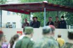 Перед построившимися на плацу участниками мероприятия выступили: вице-президент Ассоциации «Русь», Герой России Александр Никишин; президент Ассоциации ветеранов спецназа «Витязь» Виктор Путилов; член президиума «ОФИЦЕРОВ РОССИИ», бывший командир ОСН «Витязь» Николай Соловьев; отец погибшего Героя России Сергея Бурнаева Александр Бурнаев и другие. Они отметили, что подвиг павших спецназовцев не напрасен, и общая память людей – символ того, что каждый из них останется в наших сердцах. Затем гости возложили цветы к мемориалу погибших военнослужащих внутренних войск МВД.