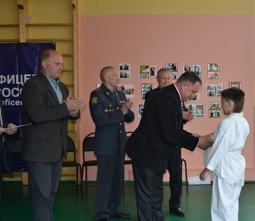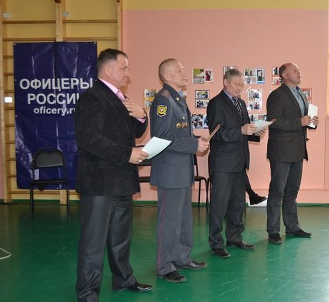Награды вручали региональный представитель «ОФИЦЕРОВ РОССИИ» по Архангельской области Виталий Флуераш, его заместители – Владимир Рудаков и Александр Завертяев и директор прогимназии №1 Дмитрий Горяшин.