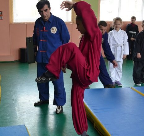 20 юных спортсменов под руководством тренера, члена организации «ОФИЦЕРЫ РОССИИ» капитана 2-го ранга Эльдара Мансимова продемонстрировали зрителям элементы ушу, технику владения оружием и другое.