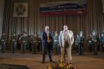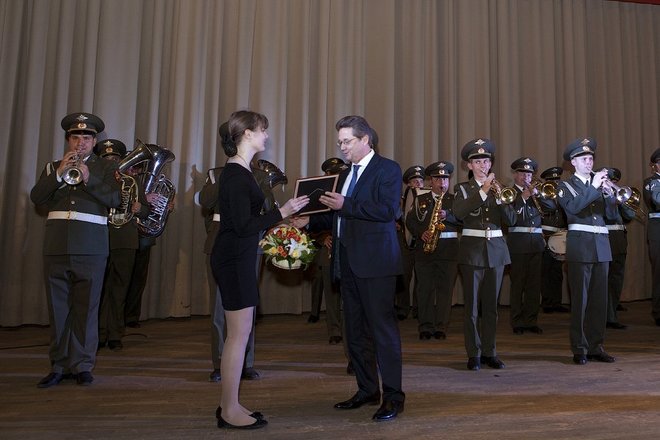 Торжественная часть вечера была посвящена награждениям и поздравлениям. Наиболее отличившихся студентов наградили грамотами, подарками. Преподавательский и студенческий коллективы факультета поздравили Антон Цветков и Александр Михайлов. Они вручили декану факультета национальной безопасности Сергею Смульскому орден «За офицерскую честь».