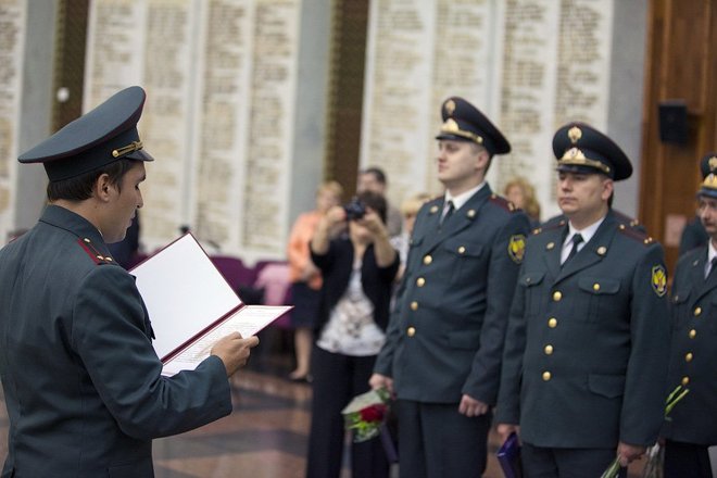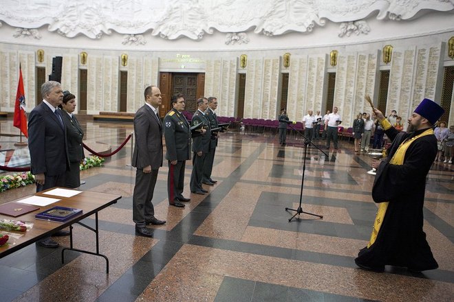 7 июня в Зале Славы Центрального музея Великой Отечественной войны 1941-1945 гг. на Поклонной горе 22 молодых сотрудника столичного УФСКН приняли присягу.