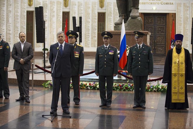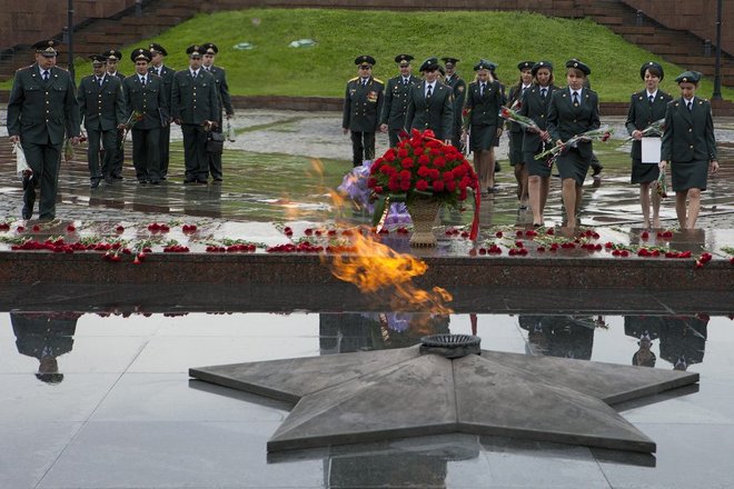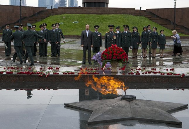 Затем сотрудники управления и почетные гости возложили цветы к Вечному огню на Поклонной горе.