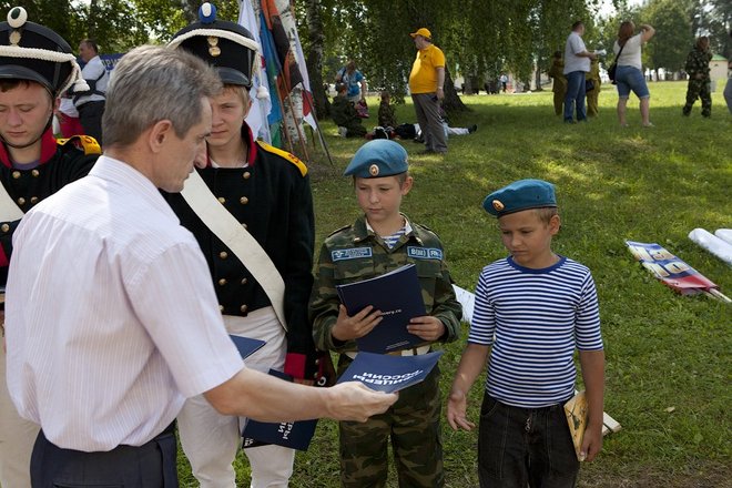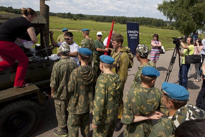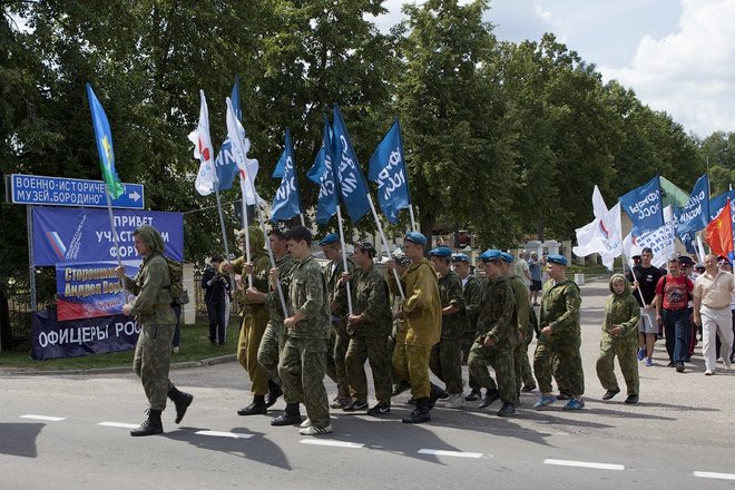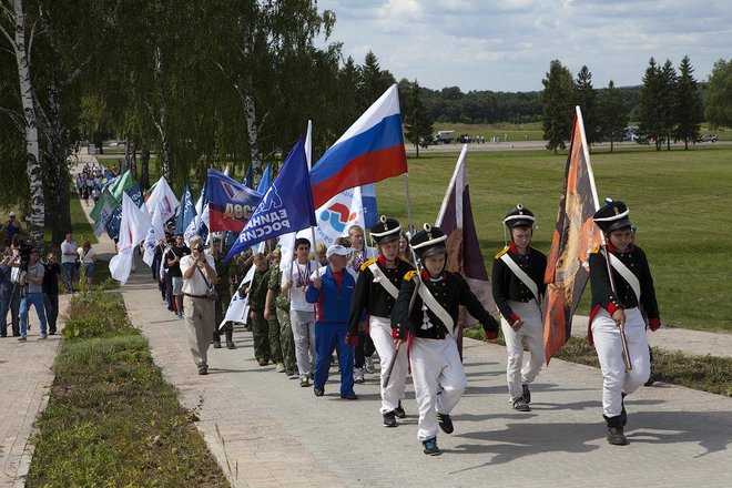 Затем участники форума – руководители и воспитанники военно-патриотических организаций, поисковых отрядов, исторических клубов и центров наследия торжественным маршем проследовали к центральному монументу Отечественной войны 1812 года и батарее Раевского. Для всех участников форума работала полевая кухня, где каждый мог отведать ароматной гречневой каши.