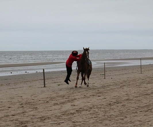 «Конь немного психологически устал, потому что мы недавно вернулись с чемпионата России – дорогу он перенес туда и обратно, а для лошади это достаточно тяжелые нагрузки. Однако мы постарались создать для всех праздничное настроение» – рассказал Денис.