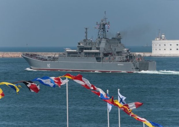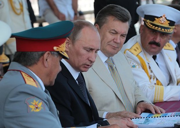 Президенты России и Украины Владимир Путин и Виктор Янукович приняли рапорты командующих флотами ВМФ России и ВМС Украины о готовности к параду в честь Дня Военно-Морского флота и Дня флота Украины.