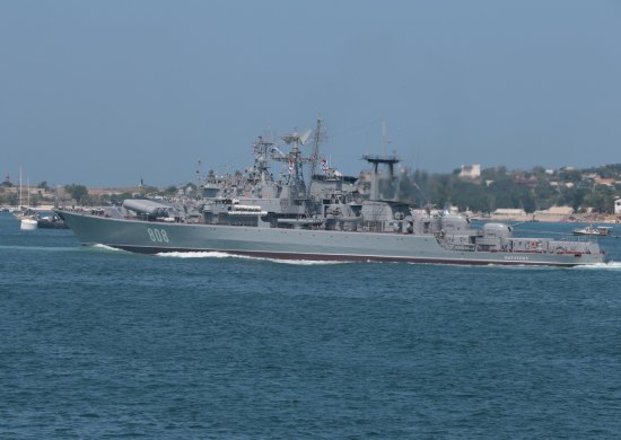 Парад кораблей двух флотов, который прошел на внутреннем рейде Севастопольской бухты, главы двух государств принимали с борта катера связи Черноморского флота России.
