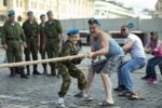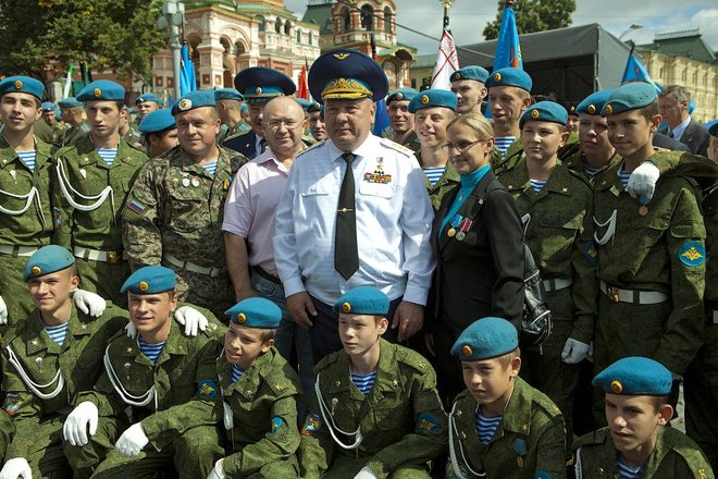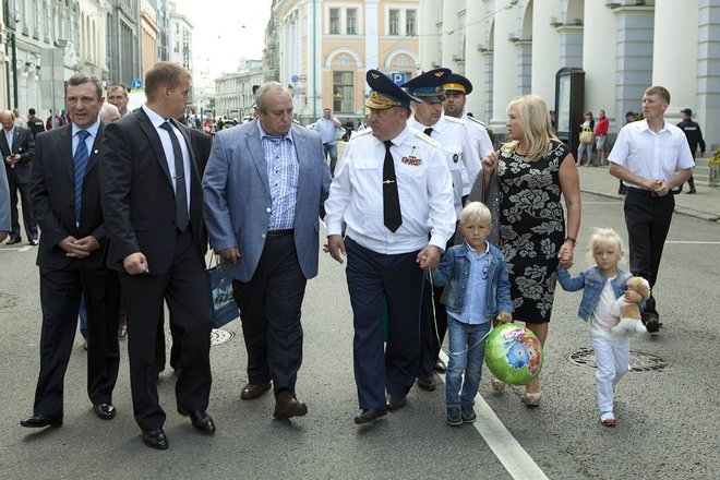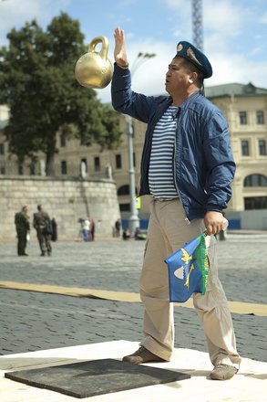 После этого состоялись показательные выступления десантников и воспитанников кадетских корпусов, а также концерт и благотворительная трапеза в честь праздника на Васильевском спуске.
